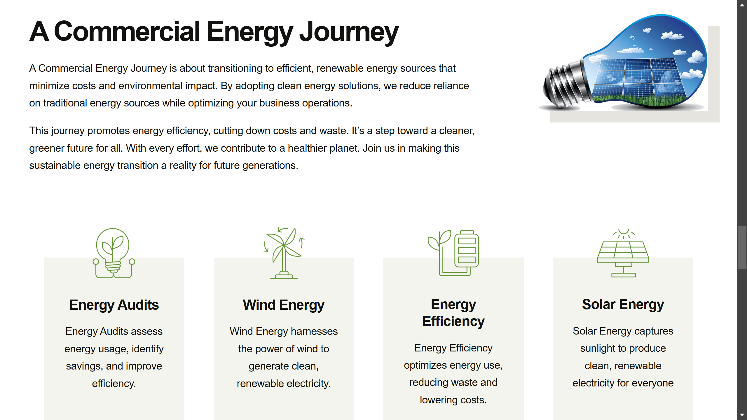 The homepage greets visitors with a clean, user-friendly layout that highlights USGEC’s commitment to efficiency and sustainability. Service pages provide detailed information about their offerings, including energy plans, smart home solutions, and infrastructure services. The website also includes an educational blog section that keeps users informed about energy-saving tips, industry news, and innovations in the energy sector.
